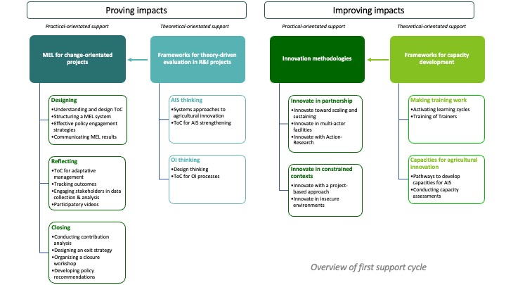 - Capacity 4: Influence Projects Environment(s) and Strengthen National AIS: Continuity of outcomes towards impact requires overall ownership and support to sustain the innovation trajectories set by the projects. It is therefore paramount that projects can influence their environment beyond their direct stakeholders to build systemic change in the AIS and long-term dynamics. Building this capacity requires projects to identify which types of capacity outcomes could be achieved at various AIS levels, engage relevant actors of change in project activities, strategically link project activities with innovation support services in the country, and to national innovation policy agendas, instruments and investments.