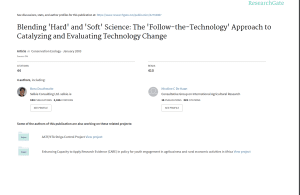 Douthwaite, B., N. C. de Haan, V. Manyong, and D. Keatinge. 2001. Blending “hard” and “soft” science: the “follow-the-technology” approach to catalyzing and evaluating technology change. Conservation Ecology 5(2): 13. [online] URL: http://www.consecol.org/vol5/iss2/art13/