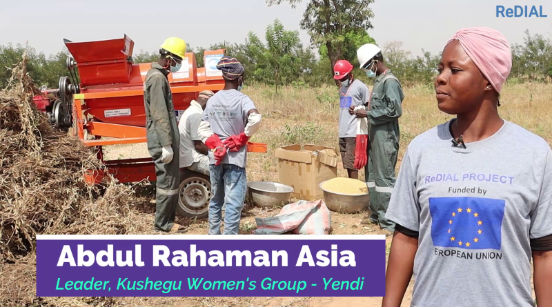 Kushegu women farmers at Yendi, Northern Region of Ghana receive support from the EU funded ReDIAL project. They use to do laborious manual threshing of their grains for many days. Now with the introduction of an innovation multi-crop Thresher technology, they have improved the quality of grains, reduced the post harvest loses and reduced the time for threshing from many days to few minutes.